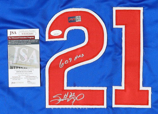 Sammy Sosa Signed Chicago Custom Autographed Blue Baseball Jersey (PIA & JSA) 609 HRS