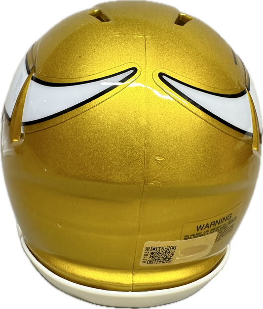 Jordan Addison Minnesota Flash Gold Signed Mini Football Helmet (PIA)