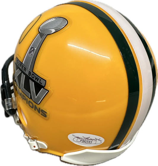 Aaron Rodgers Super Bowl Yellow Green Bay Signed Mini Football Helmet (JSA)