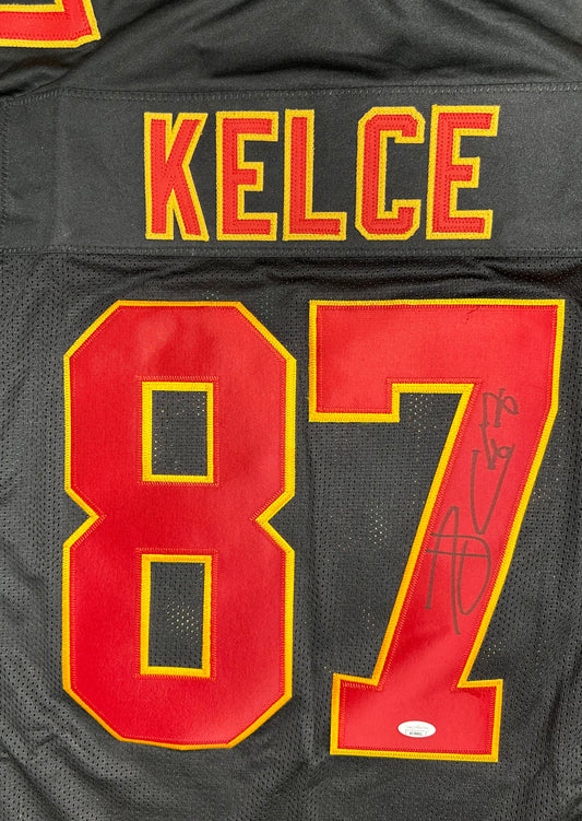 Travis Kelce Custom Kansas City Black Signed Football Jersey (JSA)