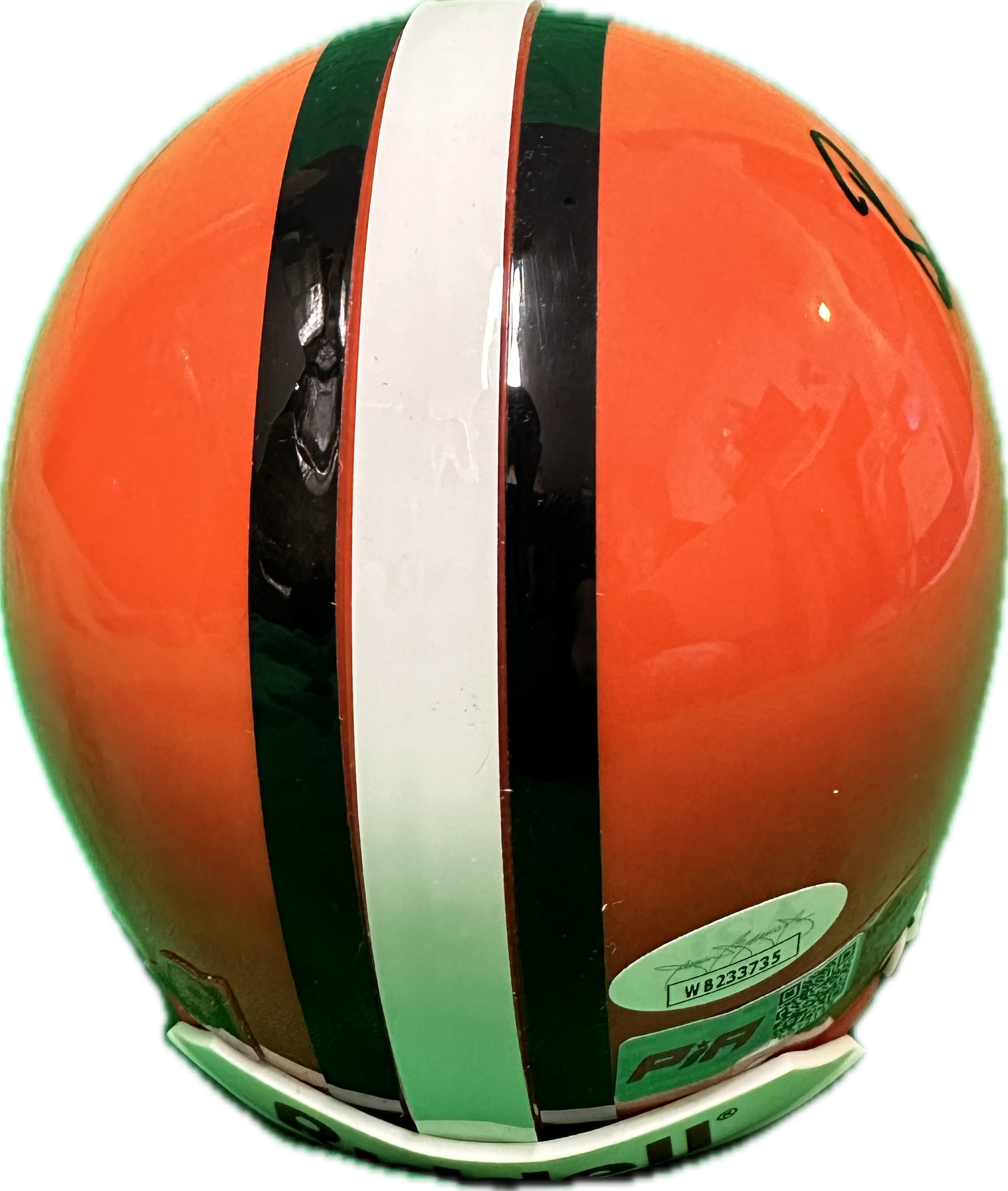 - A mini Riddell Speed NFL football helmet autographed and authenticated by PIA/JSA