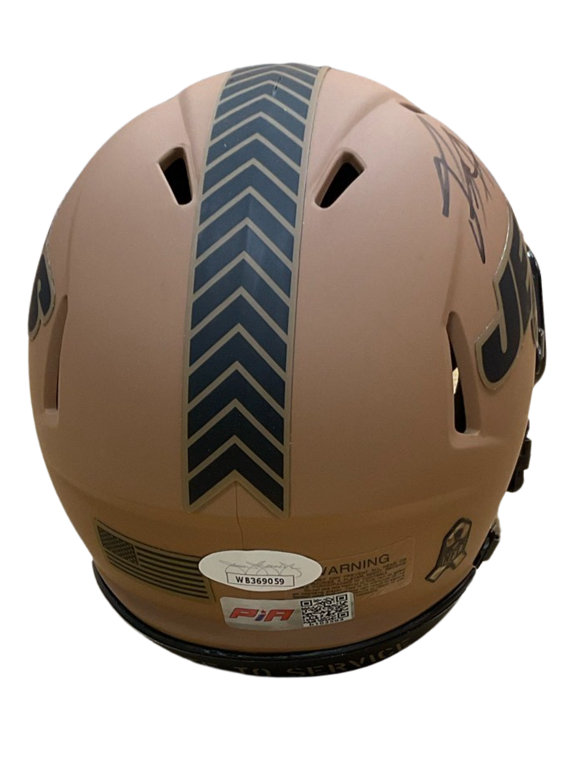 - A mini Riddell Speed NFL football helmet autographed and authenticated by PIA