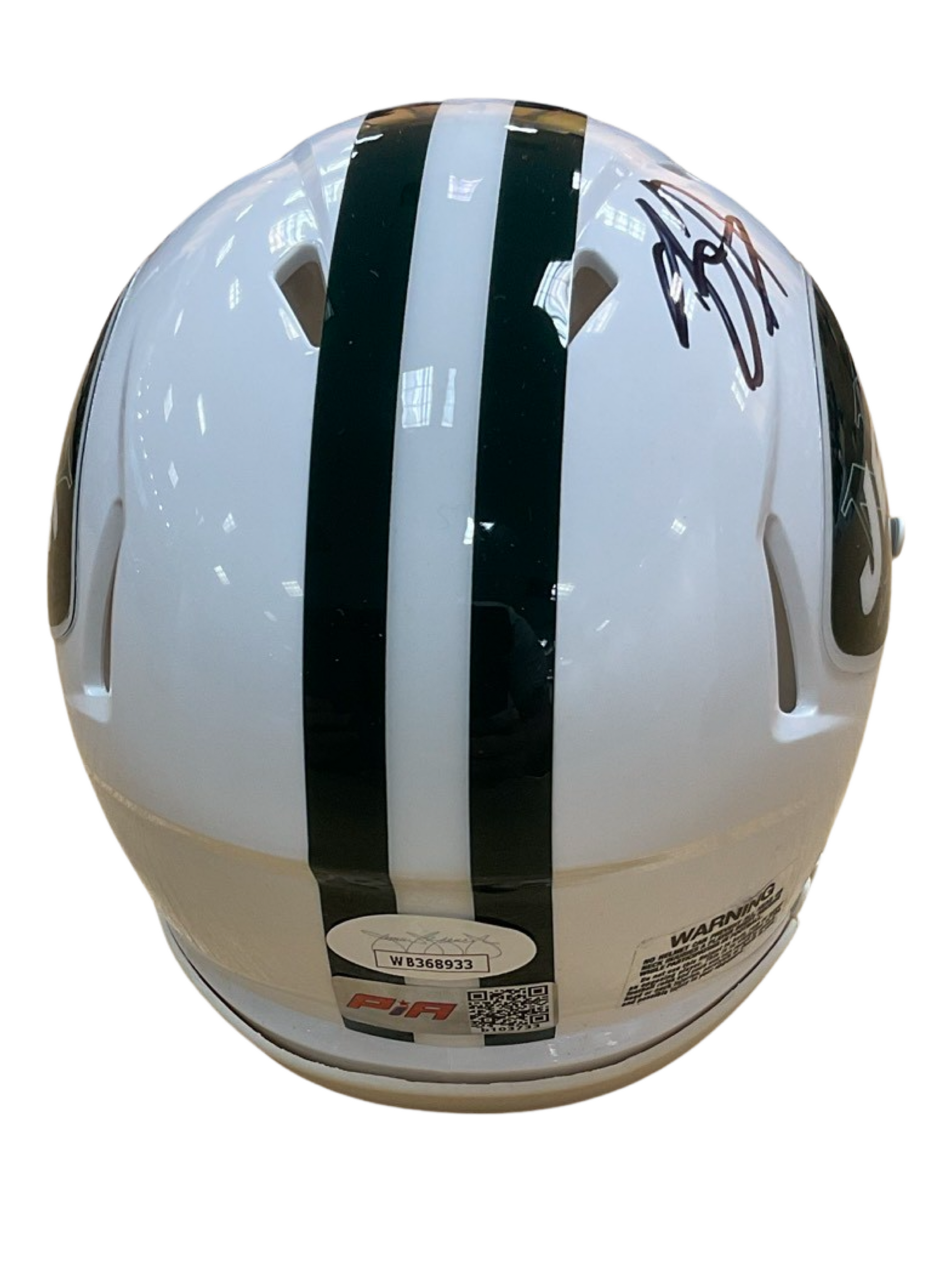 Breece Hall New York Jets White Signed Mini Football Helmet (JSA & PIA)