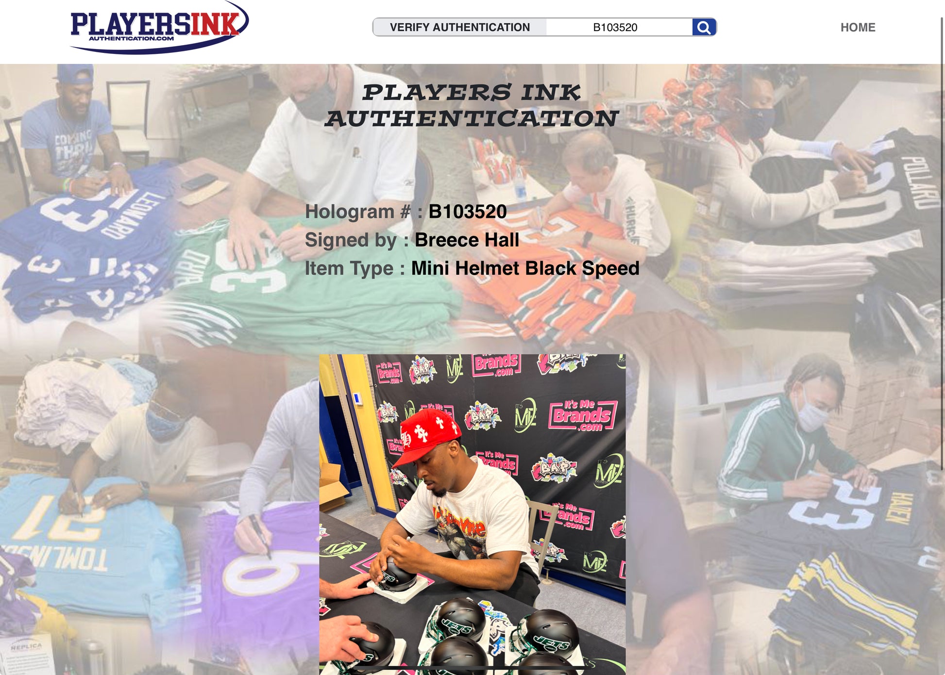 Includes a Certificate of Authenticity (COA) from (PIA) PLAYERS INK AUTHENTICATION every item comes with a QR hologram on the item. The hologram has a unique number that you can put into our database to see or you scan the qr code to see a still picture of the player signing and also a 10/15 second video of them signing the item when applicable.