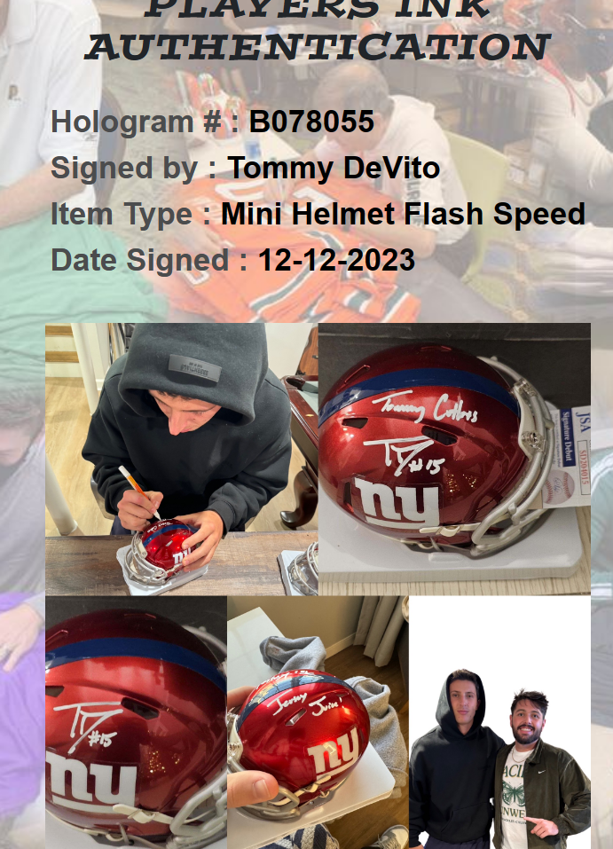 Tommy Devito Signed New York Speed Flash Mini Helmet (PIA)