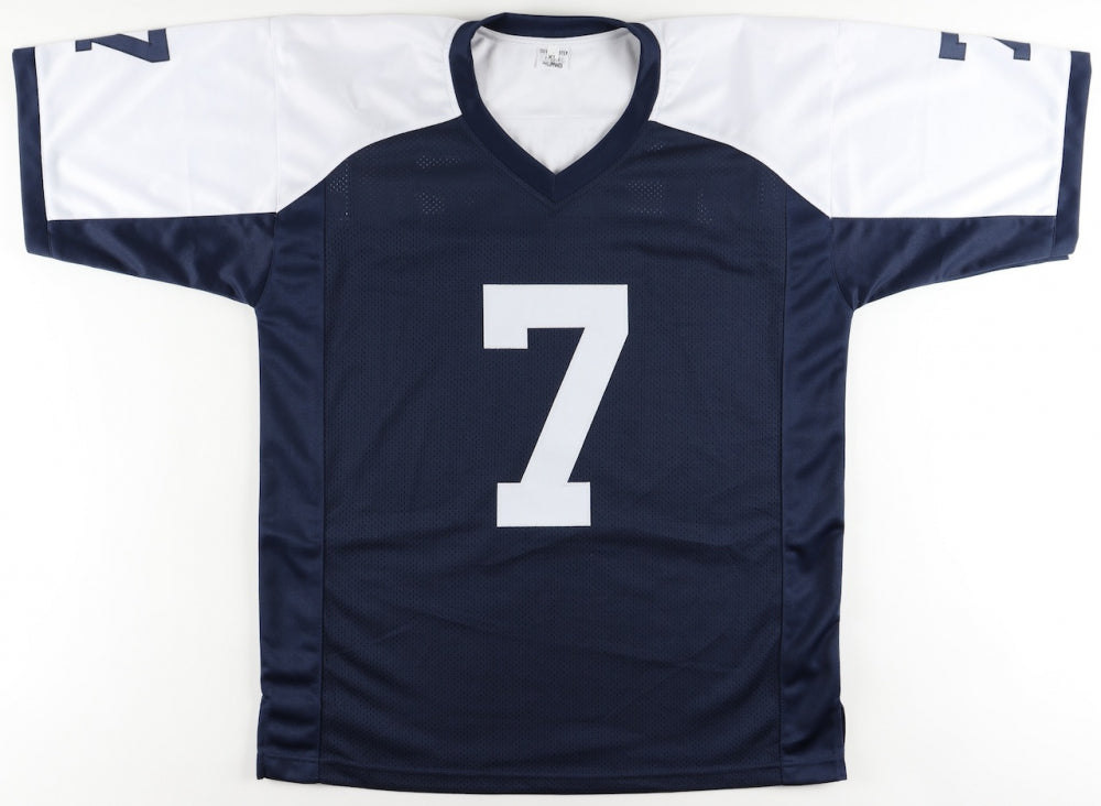 - A professional style custom football jersey with sewn on name and numbers. THERES NO TAGS ,NO LOGOS NO NFL MARKS on the custom jersey .The item listed is the stock picture of the jersey you will get with the same looking jersey and autograph placement might be different of autograph on the jersey.