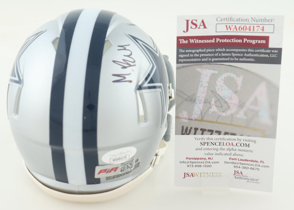 - A mini Riddell Speed NFL football helmet autographed and authenticated by PIA/JSA