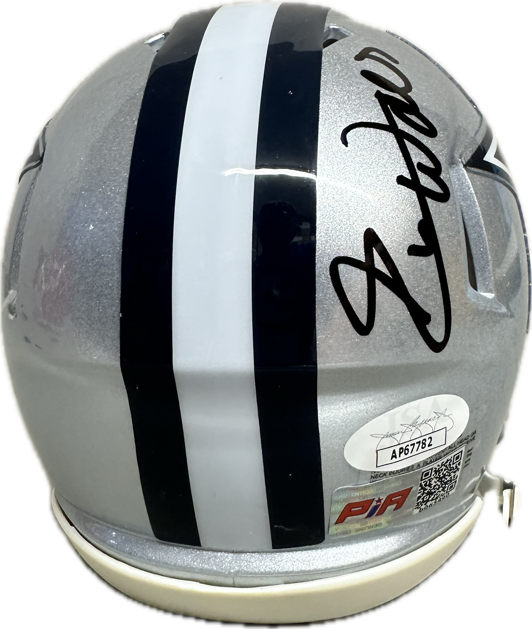 - A mini Riddell Speed NFL football helmet autographed and authenticated by JSA