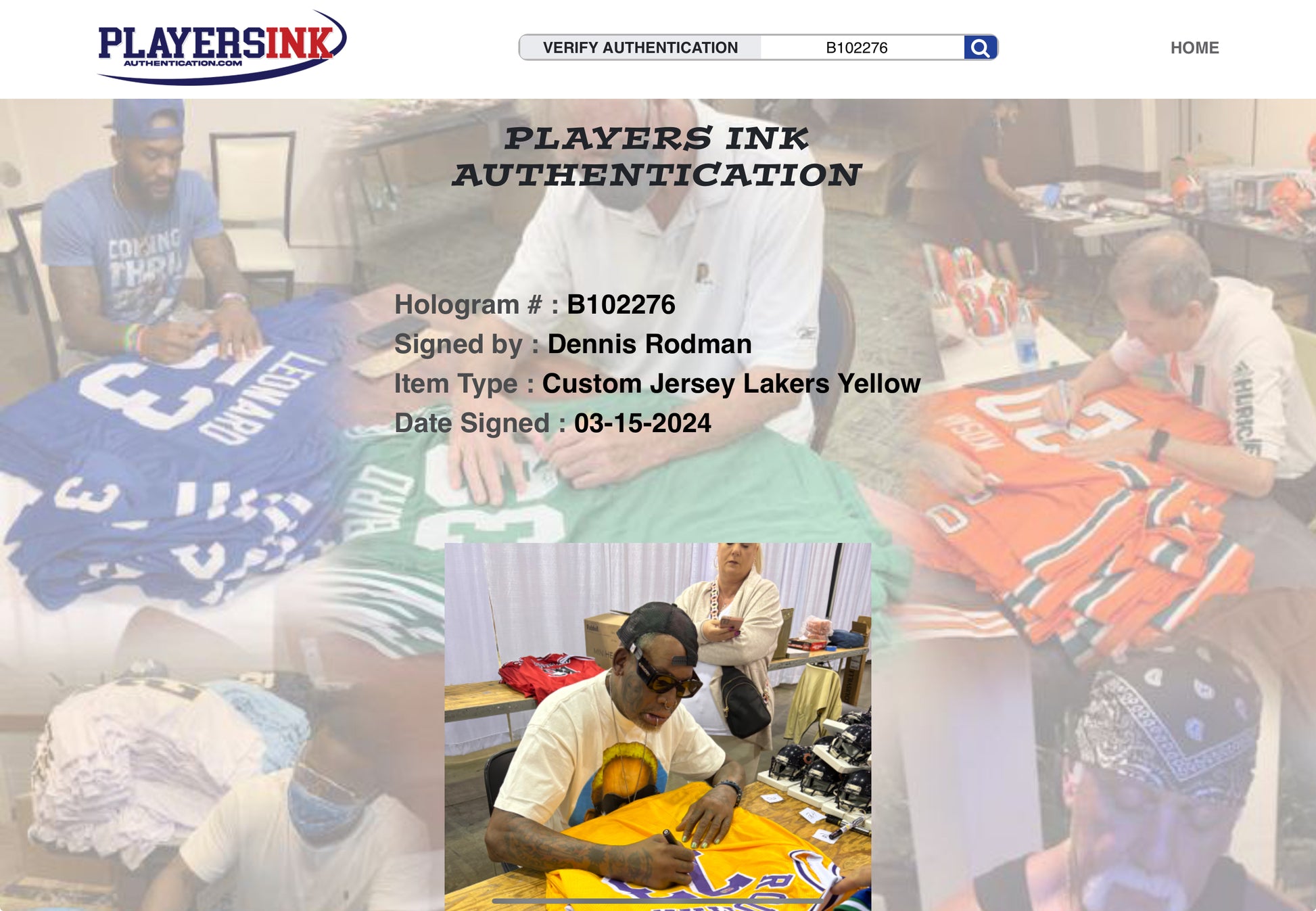 ![Dennis Rodman Autographed Los Angeles ] Custom Basketball Yellow Jersey (PIA)](http://www.imbmemorabilia.com/cdn/shop/files/IMG-0346.jpg?v=1712343920&width=1445)