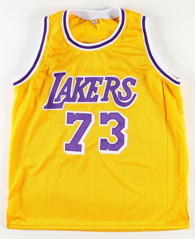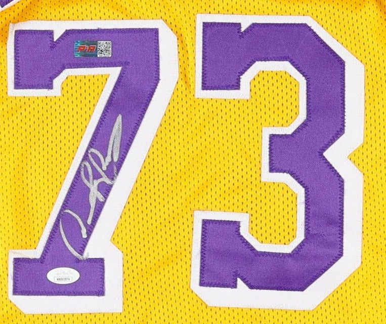 Dennis Rodman Autographed Los Angeles ] Custom Basketball Yellow Jersey (PIA)