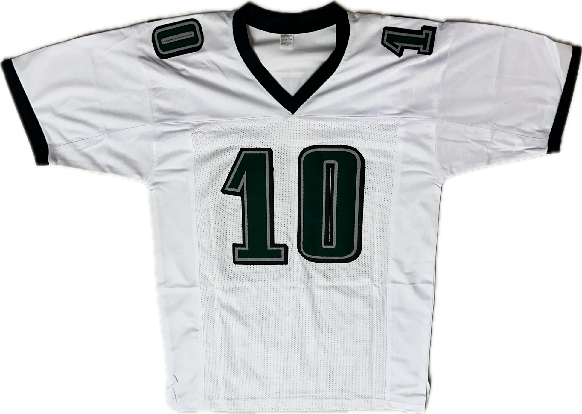 - A professional style custom football jersey with sewn on name and numbers. THERES NO TAGS ,NO LOGOS NO NFL MARKS on the custom jersey .The item listed is the stock picture of the jersey you will get with the same looking jersey and autograph placement might be different of autograph on the jersey.