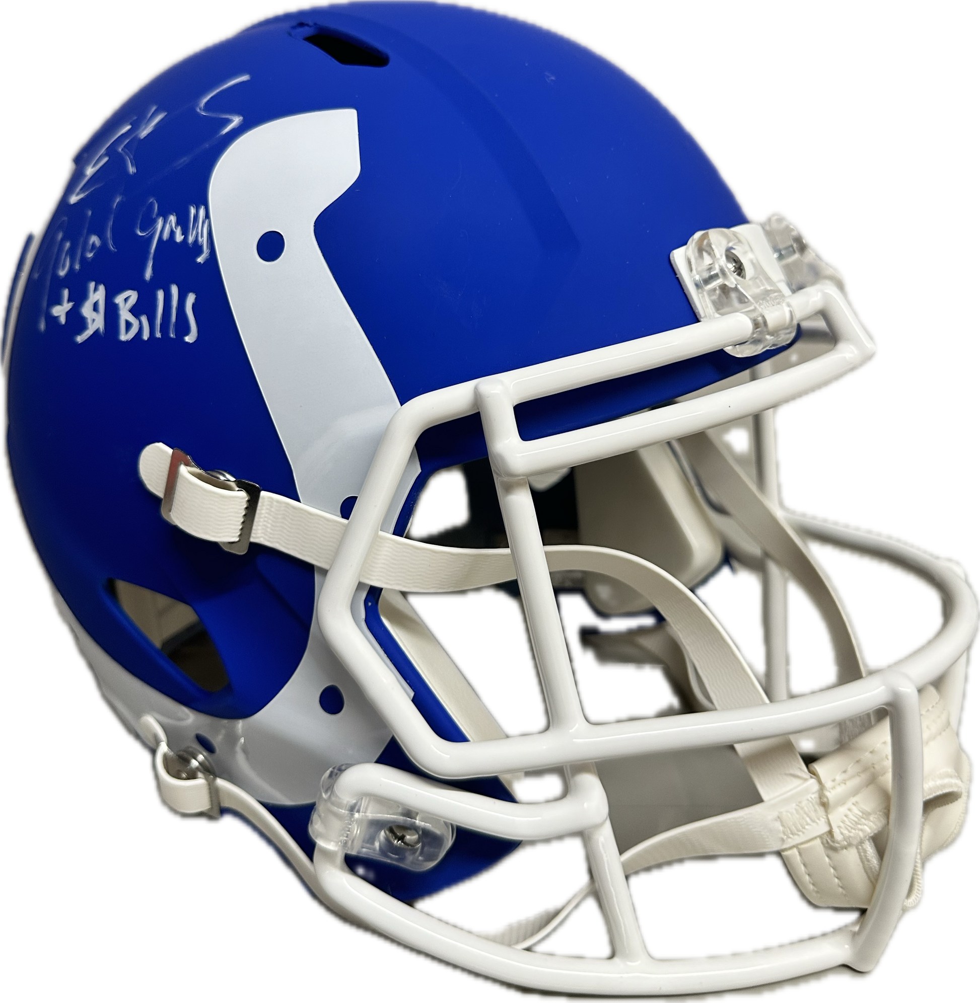 Edgerrin James Full Size Indianapolis Eclipse Blue Speed AMP Football Helmet (JSA) Gold Teeth To Gold Jacket