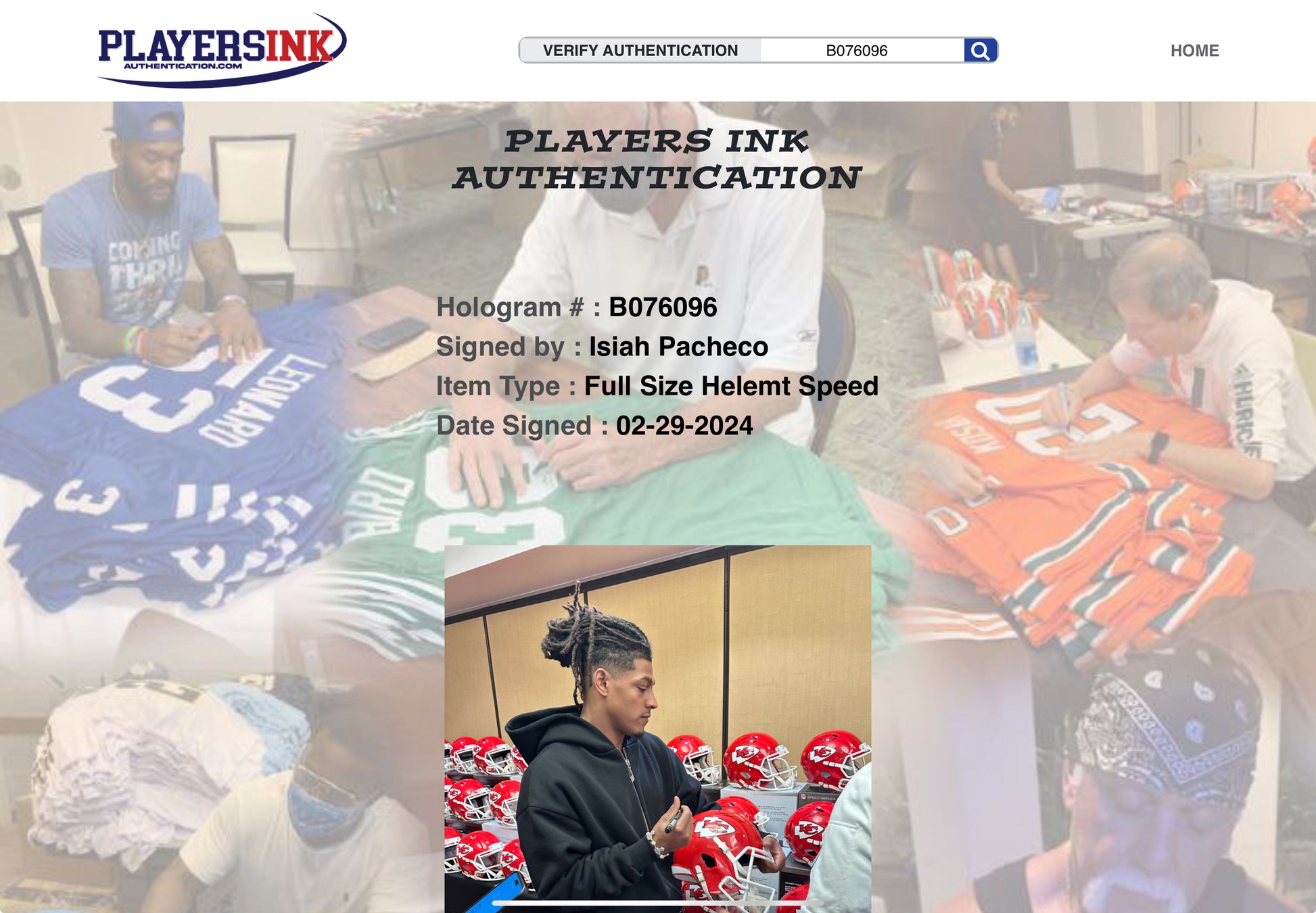 Isiah Pacheco Kansas City Full Size Red Speed Football Helmet (JSA)