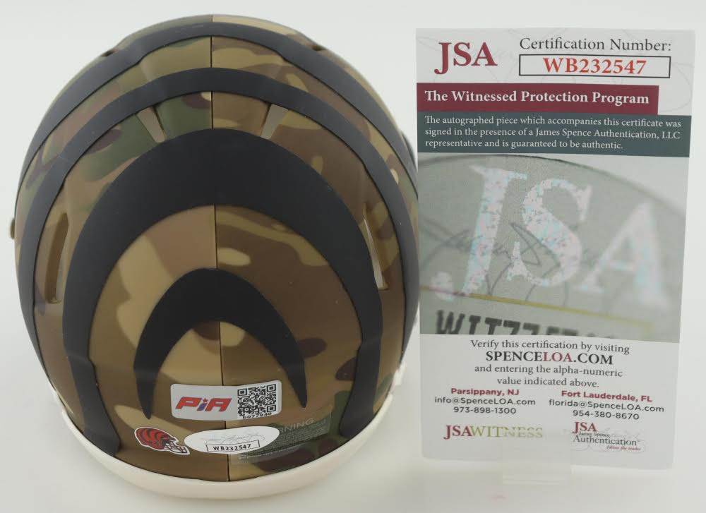 - A mini Riddell Speed NFL football helmet autographed and authenticated by PIA/JSA
