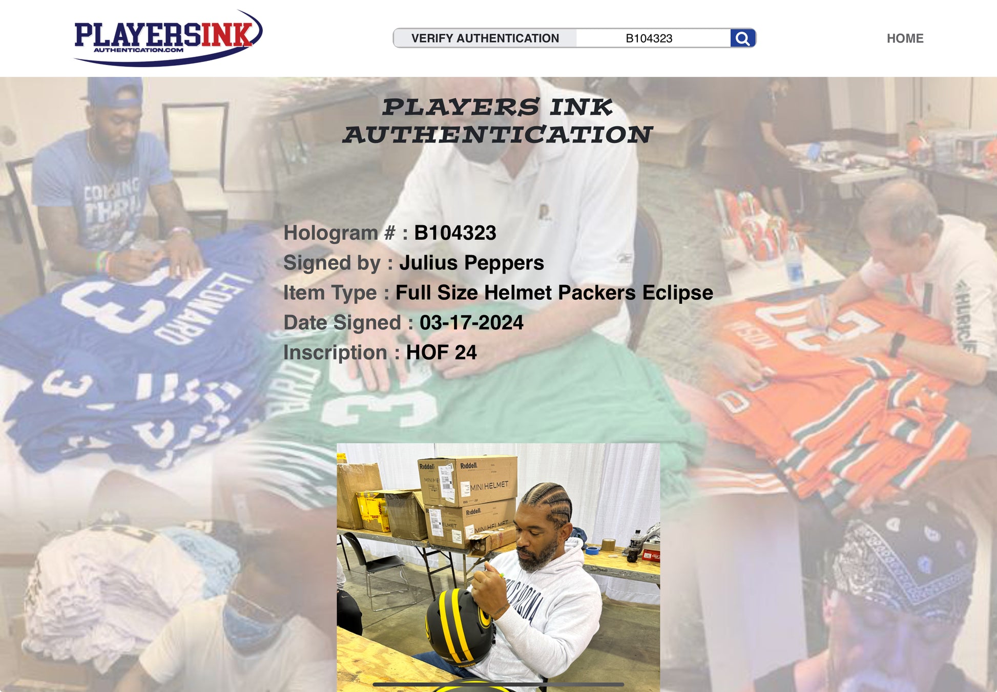 Julius Peppers Green Bay Full Size Eclipse Football Helmet (JSA & PIA)