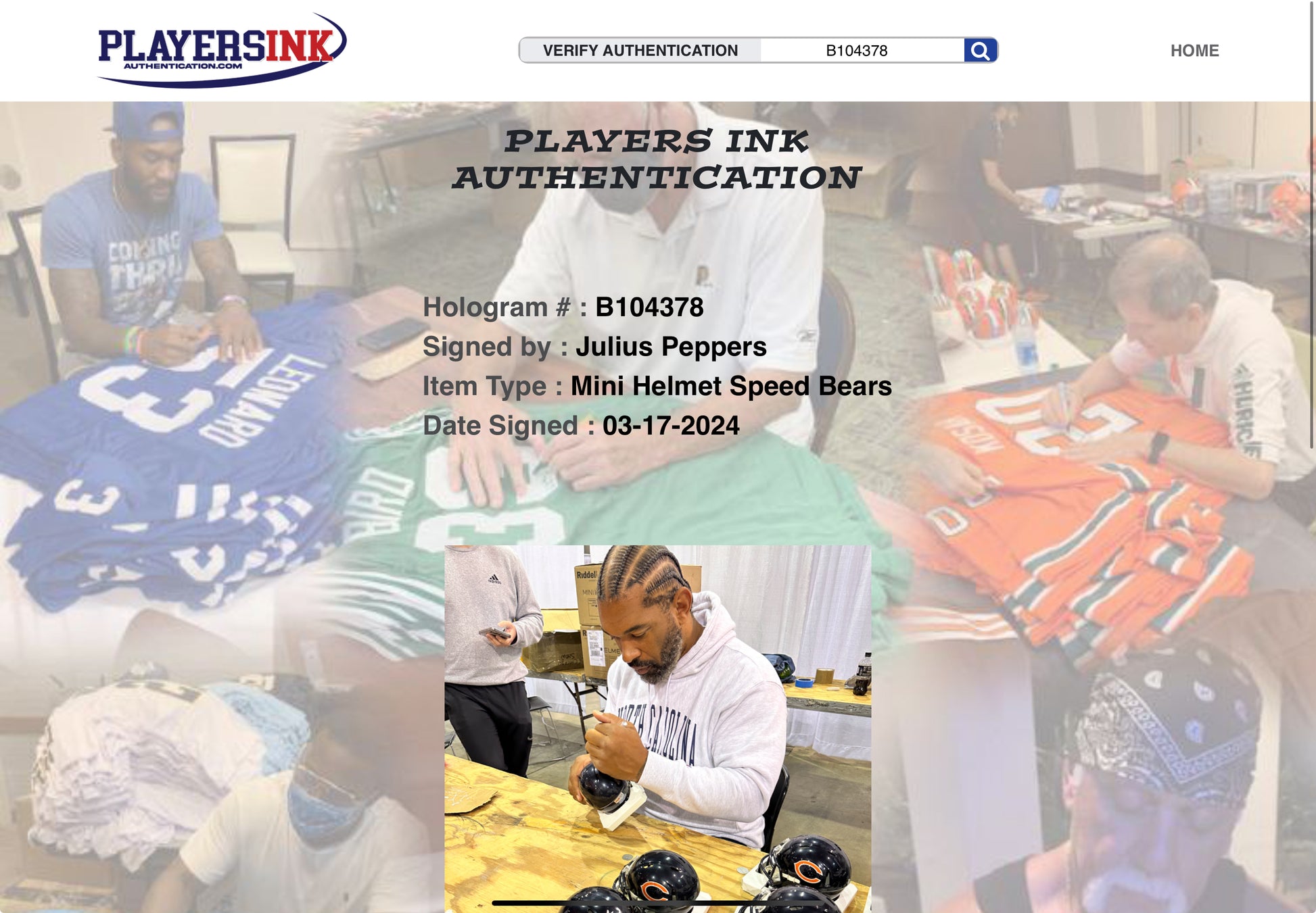 Julius Peppers Signed Chicago Mini Football Speed Helmet (PIA & JSA)
