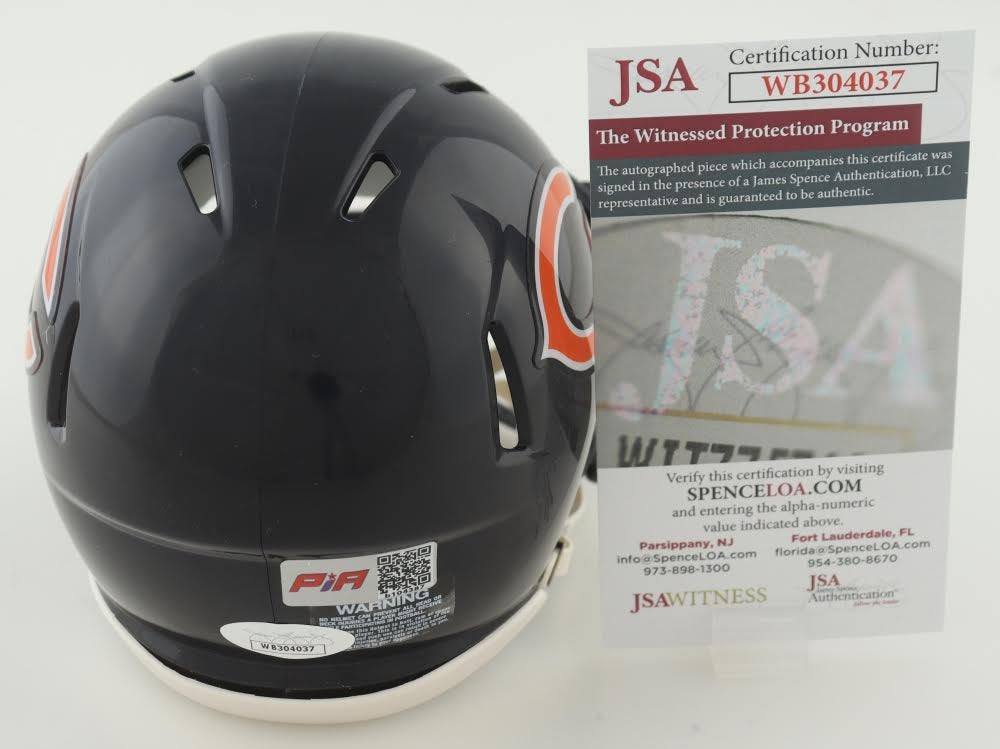 - A mini Riddell Speed NFL football helmet autographed and authenticated by PIA/JSA