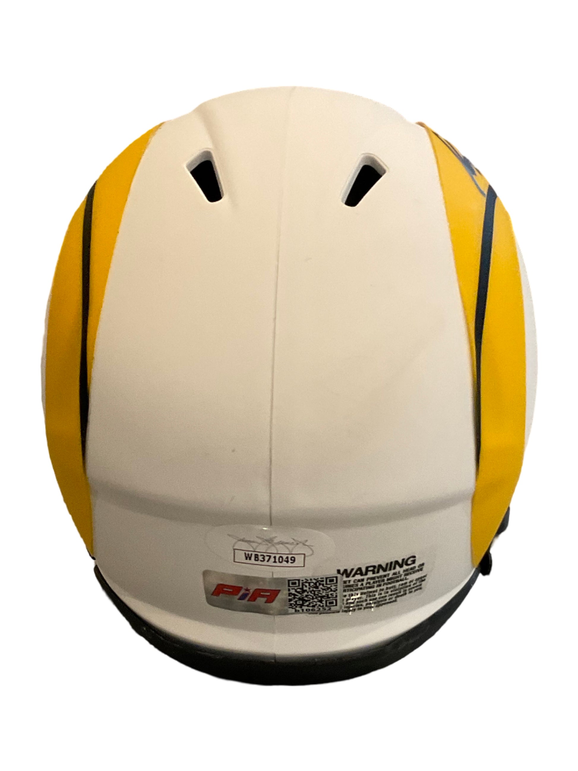 - A mini Riddell Speed NFL football helmet autographed and authenticated by JSA