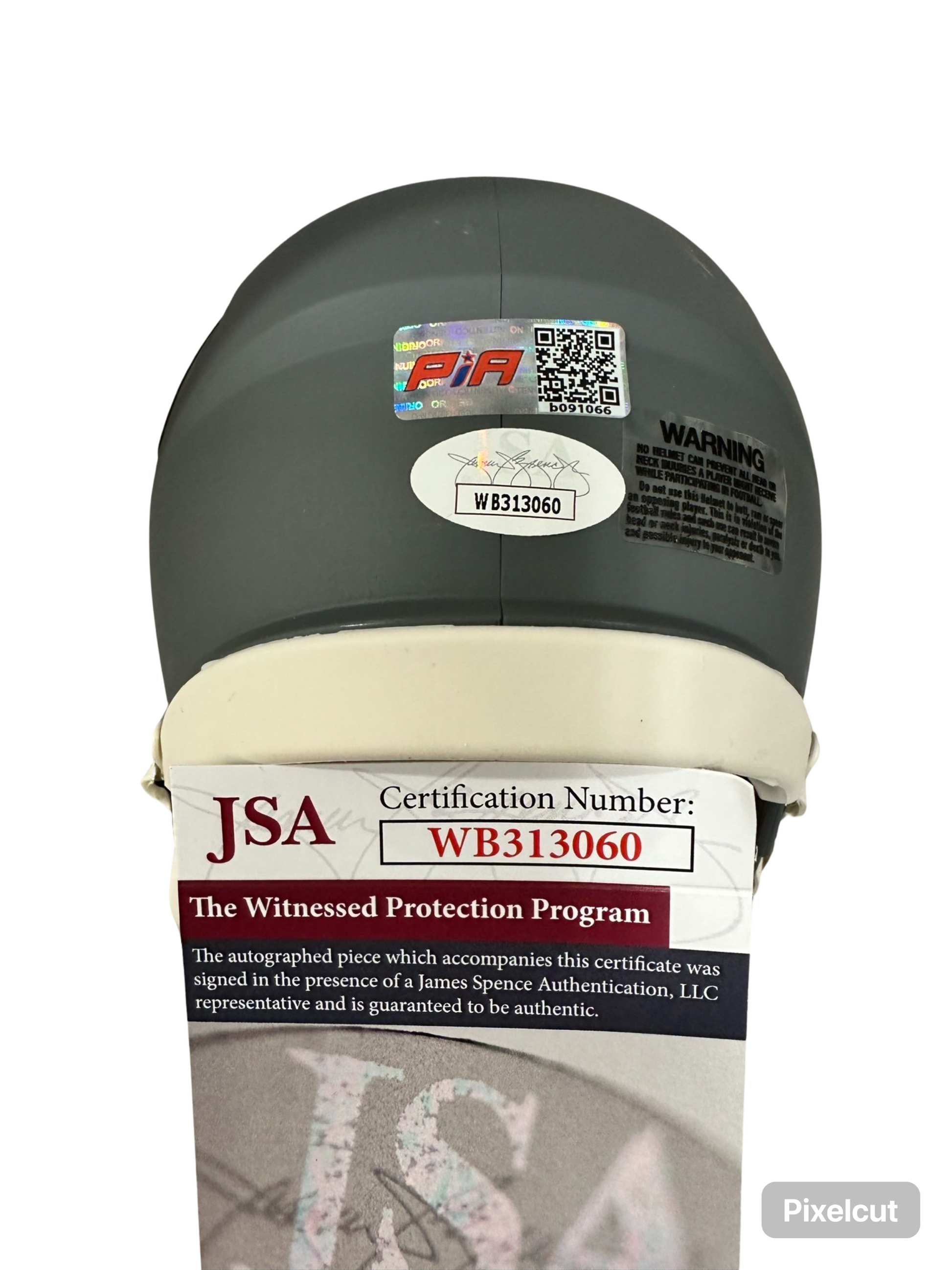 - A mini Riddell Speed NFL football helmet autographed and authenticated by PIA/JSA