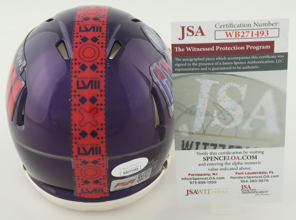 - A mini Riddell Speed NFL football helmet autographed and authenticated by PIA/JSA