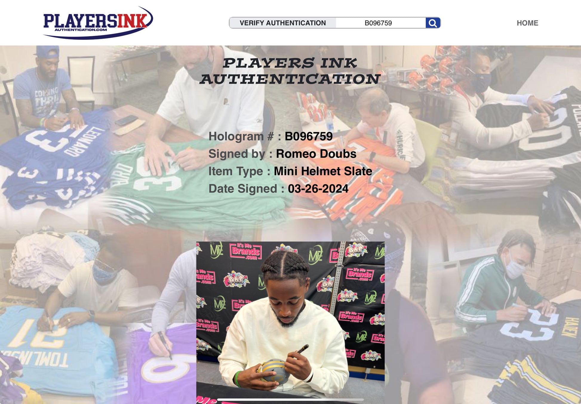 - .The item listed is the stock picture of the jersey you will get with the same looking autograph placement might be different of autograph on the mini helmet.