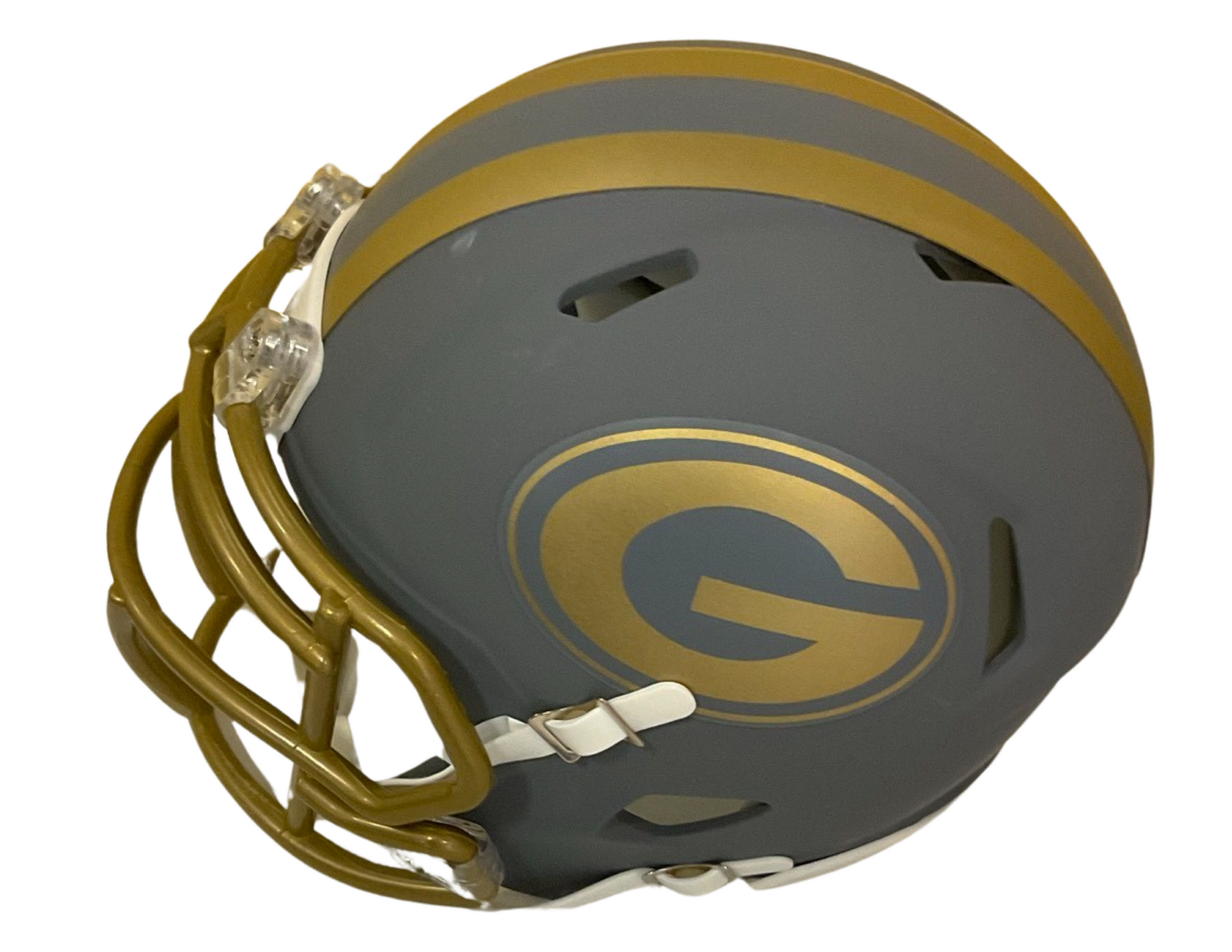 Romeo Doubs Signed Green Bay Mini Football Slate Helmet (PIA & JSA) Gold Signature