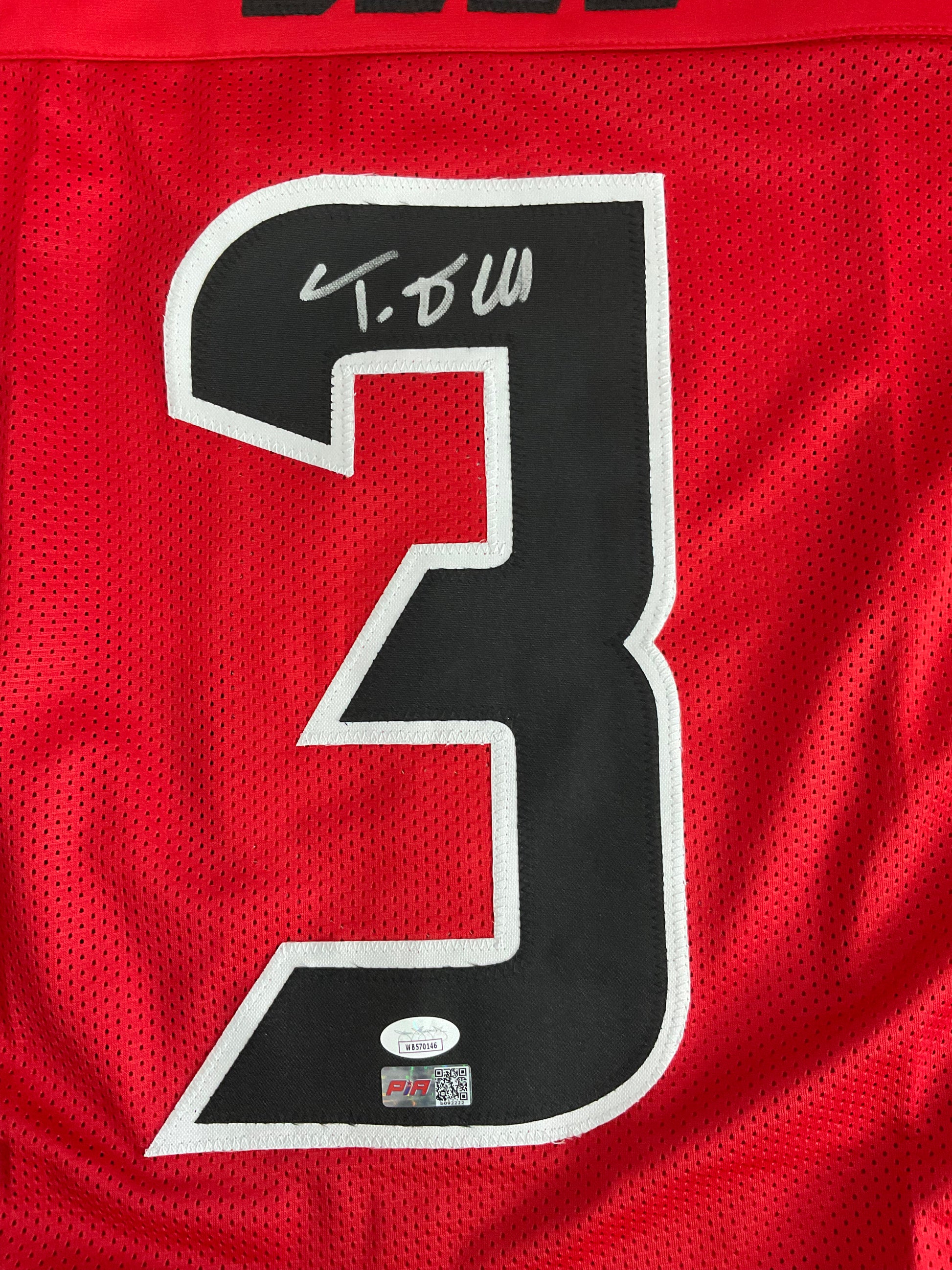 Tank Dell Autographed Houston Custom Football Red ALT Jersey (PIA)