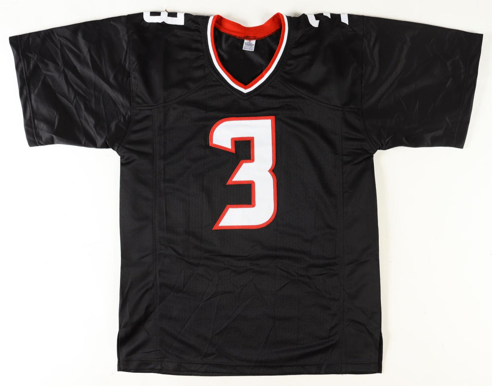 - A professional style custom football jersey with sewn on name and numbers. THERES NO TAGS ,NO LOGOS NO NFL MARKS on the custom jersey .The item listed is the stock picture of the jersey you will get with the same looking jersey and autograph placement might be different of autograph on the jersey.