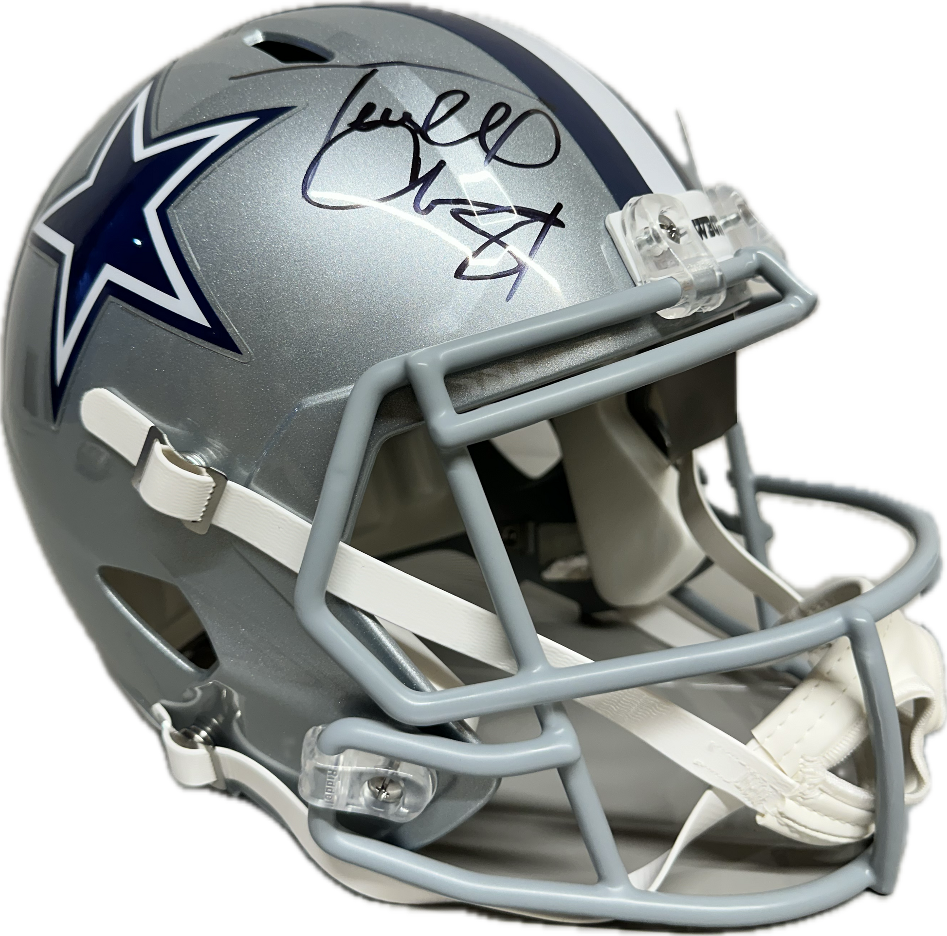 Terrell Owens "Getcha Popcorn Ready" Inscription Dallas Full Size Football Helmet (JSA)