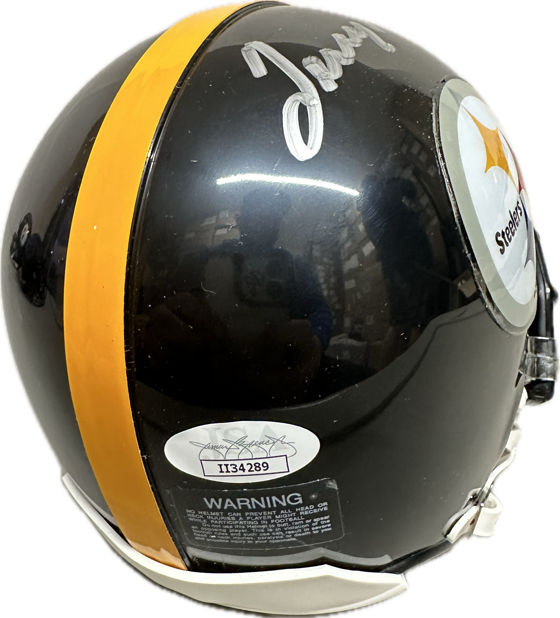 - A mini Riddell Speed NFL football helmet autographed and authenticated by PIA/JSA