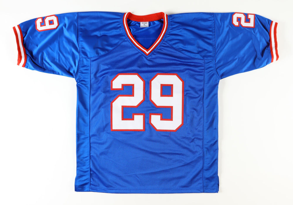 - A professional style custom football jersey with sewn on name and numbers. THERES NO TAGS ,NO LOGOS NO NFL MARKS on the custom jersey .The item listed is the stock picture of the jersey you will get with the same looking jersey and autograph placement might be different of autograph on the jersey.