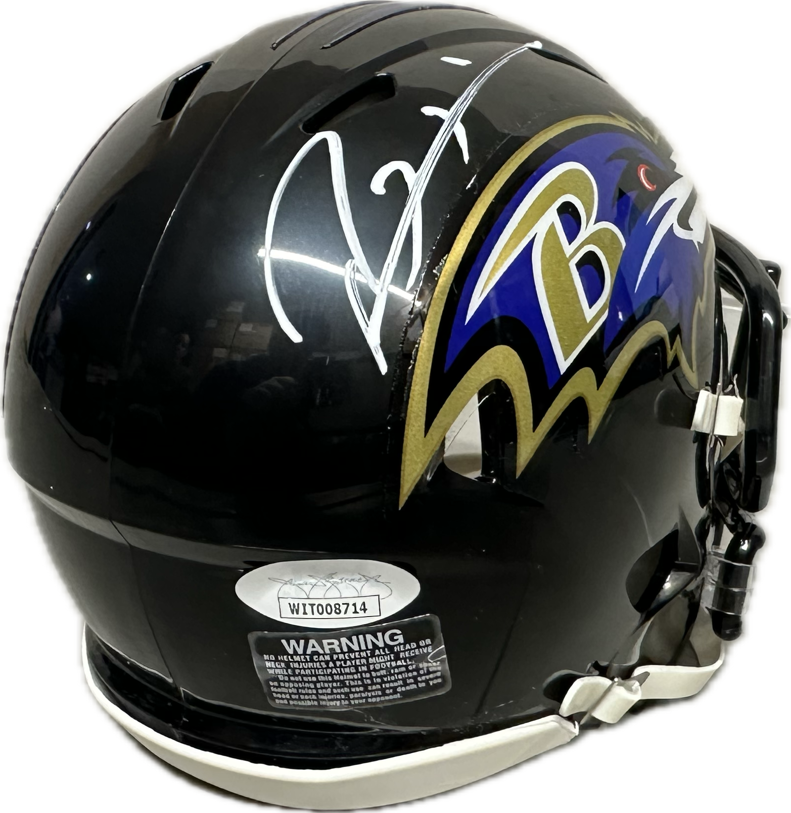 - A mini Riddell Speed NFL football helmet autographed and authenticated by PIA/JSA